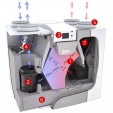 Nauji unikalūs ventiliatoriai su integruotais anemometrais. Naujieji GreenTech EC ventiliatoriai su atgal lenktomis mentelėmis dabar patalpinti į specialų sraigės formos korpusą. Ši unikali konstrukcija pasižymi nepaprastu efektyvumu ir ypač tyliu veikimu. Dar vienas išskirtinis šio ventiliatoriaus bruožas – tai patentuotas oro srauto matavimo būdas su integruotais anemometrais. Tokiu būdu oro srautas matuojamas labai tiksliai, todėl rekuperatorius tiekia ir šalina bet kokiomis salygomis preciziškai subalansuotus oro srautus ir užtikrina pastovų didelį įrenginio terminį efektyvumą.